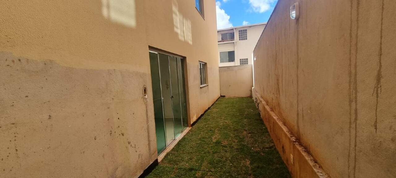 Apartamento com 1 suíte, mais 2 quartos, cozinha planejada, 1 banheiro social com armário, área de serviço, área externa gramada com aproximadamente 60 m² e 2 vagas em linha de garagem.