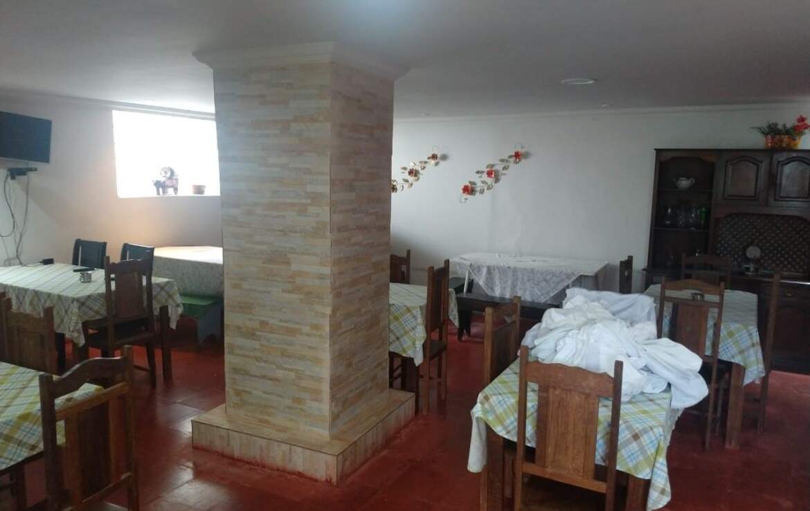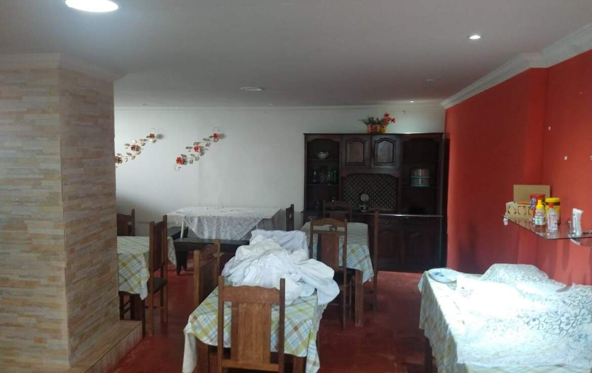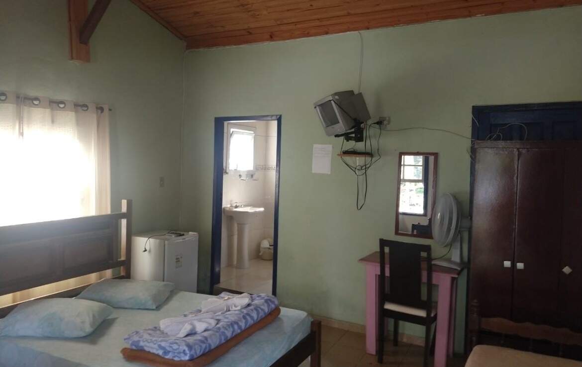 Tendo uma casa principal,04 apartamentos com 02 quartos cada, 01 banheiro cada, 02 salas,02 banheiros, 01 lavanderia, 01 recepção, porão, salão para café,cozinha e banheiro,06 apartamentos com 01 quarto e 01 banheiro cada, 06 chales, com 01 quarto cada e 01 banheiro cada,10 vagas para carro.