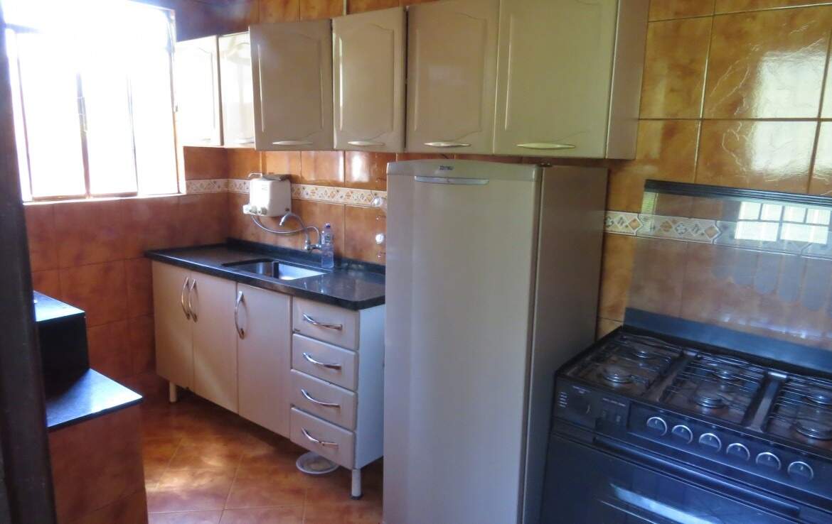 Casa de 5 quartos, 3 salas, 2 banheiros, copa cozinha, cozinha com fogão a lenha, terraço grande com banheiro e garagem com 1 vaga coberta.