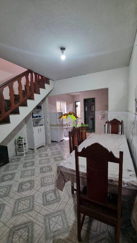 Casa com 1 suíte grande mais 3 quartos, 1 sala, 1 banheiro social, cozinha ampla, área de serviço e quintal.