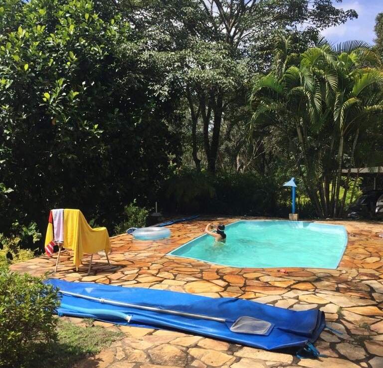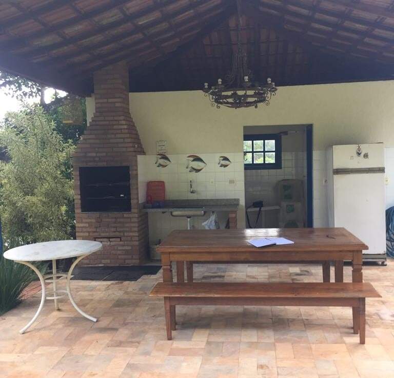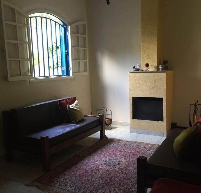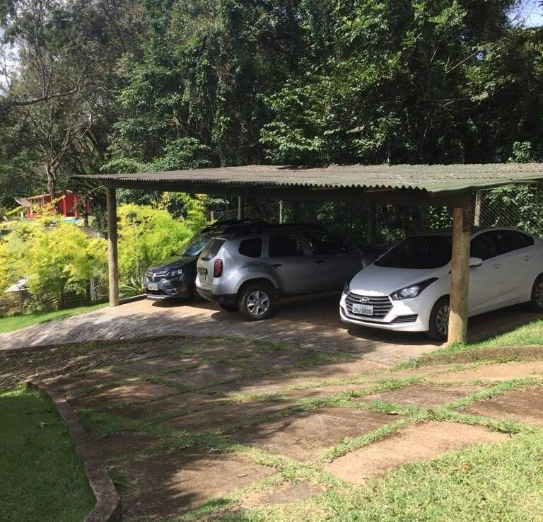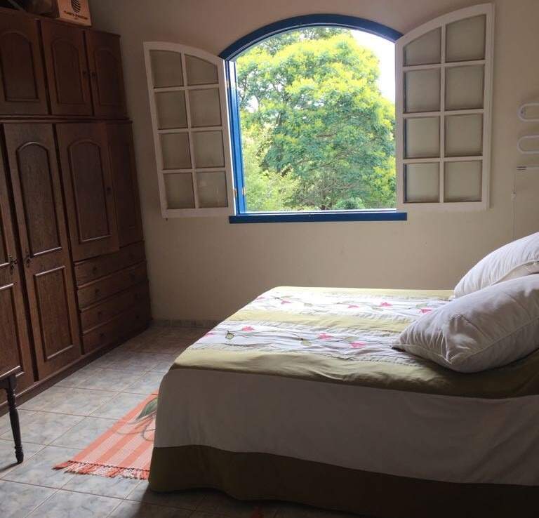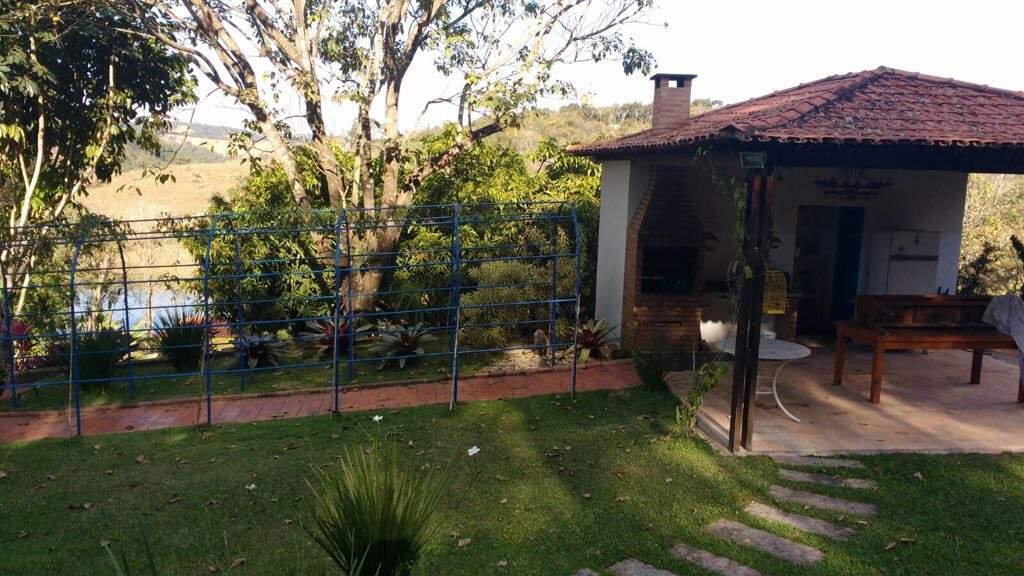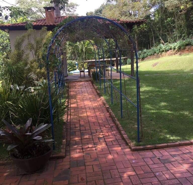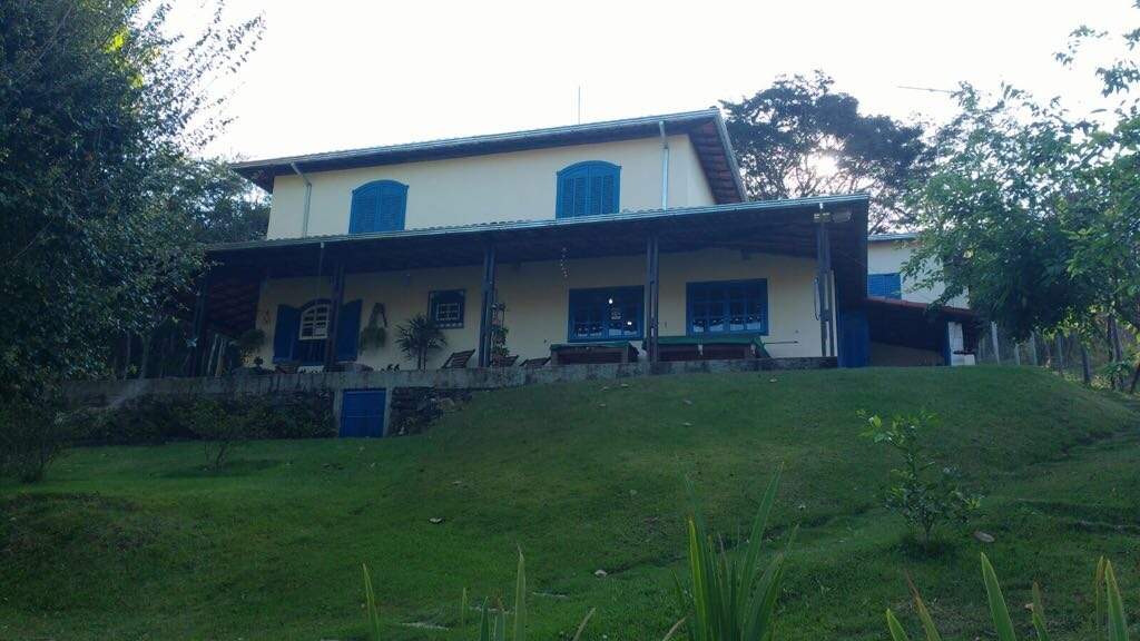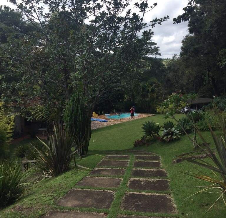 Casa com 2 pavimentos tendo: 06 quartos (03 na parte de cima, com 01 banheiro), mais 03 quartos no primeiro pavimento, total de 5 banheiros sendo um na churrasqueira e um lavabo na sala, cozinha grande, fogão a lenha, com água quente que atende ao banheiro da sala, sala com lareira, anexa à uma varanda interna; garagem para 04 carros, posicionada na parte alta para melhor visualização; terreno todo gramado, cujo acesso se faz através de escadinhas de pedras, acompanhando o paisagismo, feito por profissionais , arvores frutíferas novas e toda uma decoração de plantas nobres; caramanchão com bancos e mesa de granito; pequena horta estruturada na parte alta do terreno; casinha do caseiro para a guarda de materiais de seu uso; piscina; sauna; uma segunda garagem, fechada, para a guarda de triciclos; casinha de bonecas; uma varanda grande; área boa de serviço com bancada de granito. Muitas mangueiras. Várias espécies de limão. Pitangueira, amoras, mexericas começando a dar, deliciosas bananas, muito abacate e uma variedade de laranjas já plantadas. Boa cisterna, uma caixa de 10.000 litros na parte de cima, que abastece o consumo com tranquilidade.