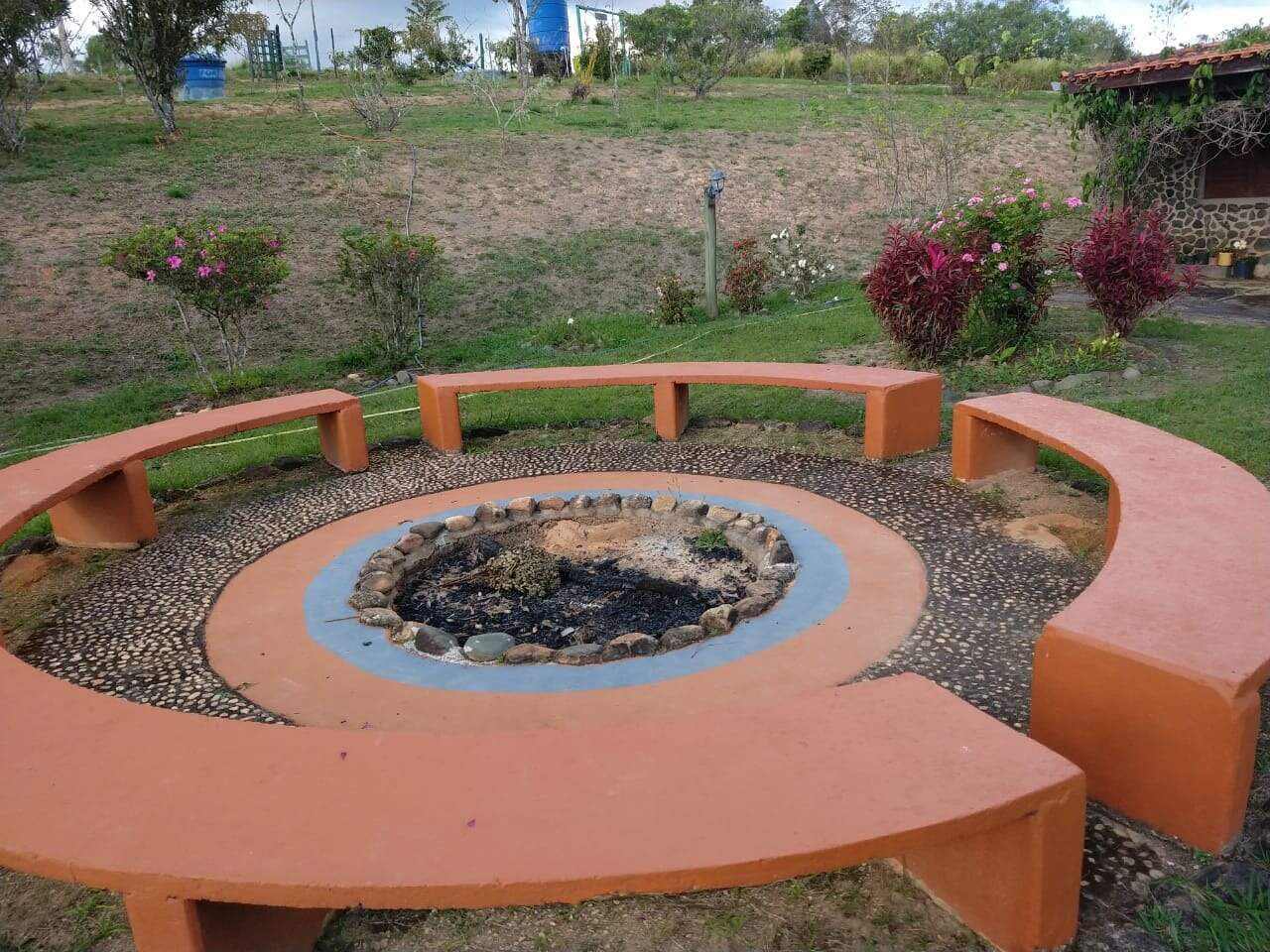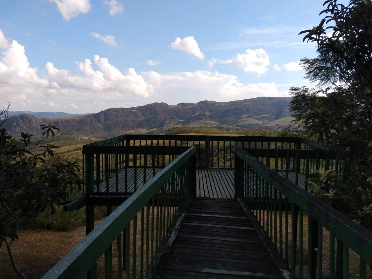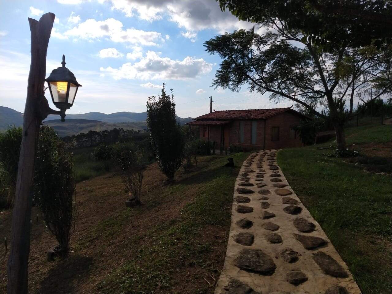 Espaço para fogueira, mirante com vista panorâmica das montanhas, caminhos de pedras roladas entre os chalés e áreas de convivência.