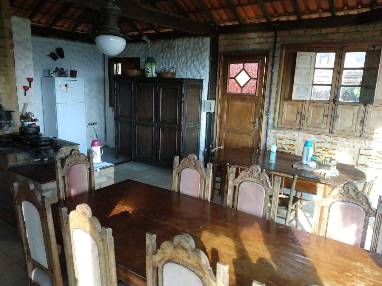 1 Chalé de madeira com 2 andares: com sala, cozinha, duas suítes e dois quartos, banheiro social.