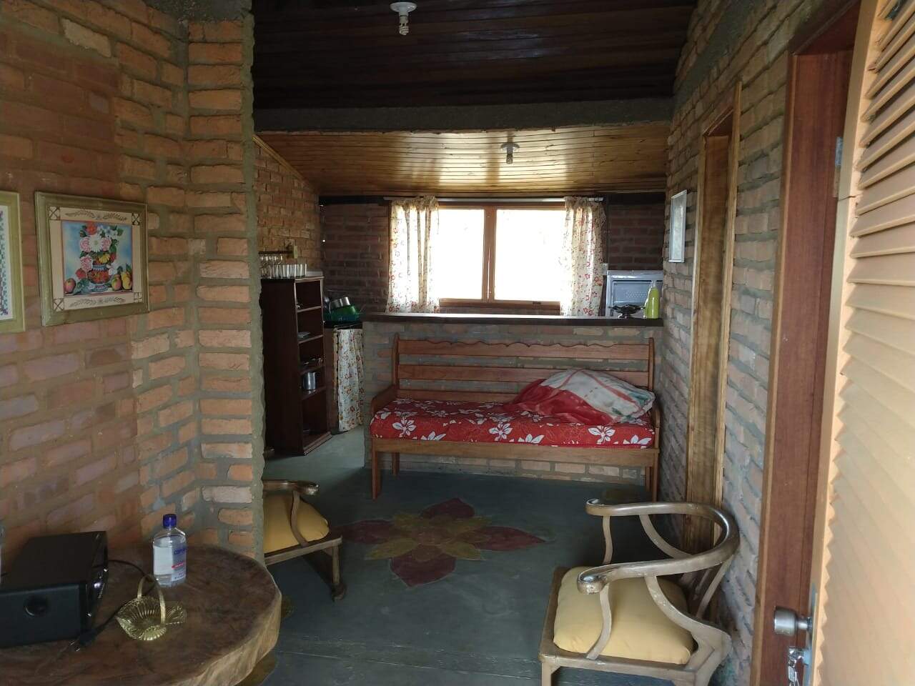 1 Chalé com 3 quartos, sala, cozinha, banheiro e área de serviço.
