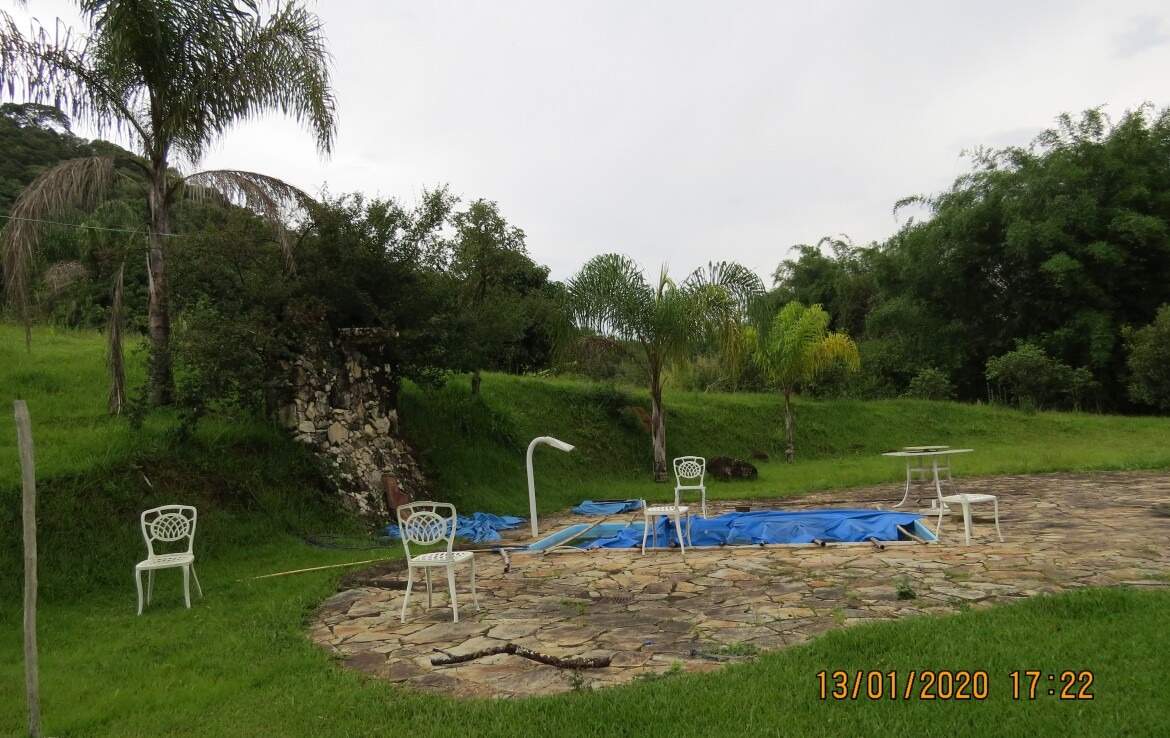 A sede tem uma casa principal com 1 suíte, mais 3 quartos, sala, sala de jantar, cozinha com fogão a lenha, 2 banheiros sociais, área de serviço e uma varanda na frente da casa com linda vista para um vale . Ainda uma área gourmet com churrasqueira, banheiro e deposito. Piscina com cascata e um lindo lago no jardim.