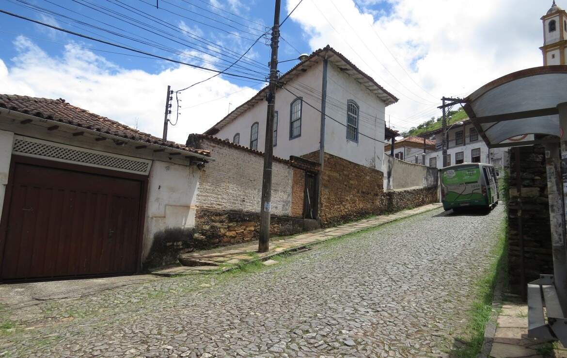 Ponto de ônibus em frente, a 500 metros da Praça Tiradentes.