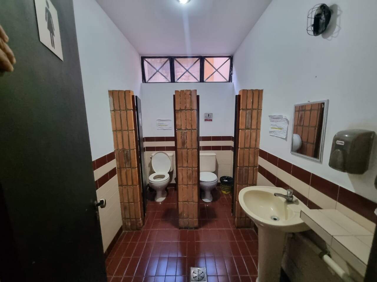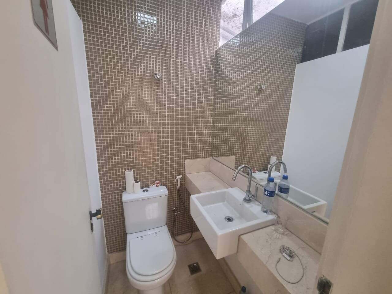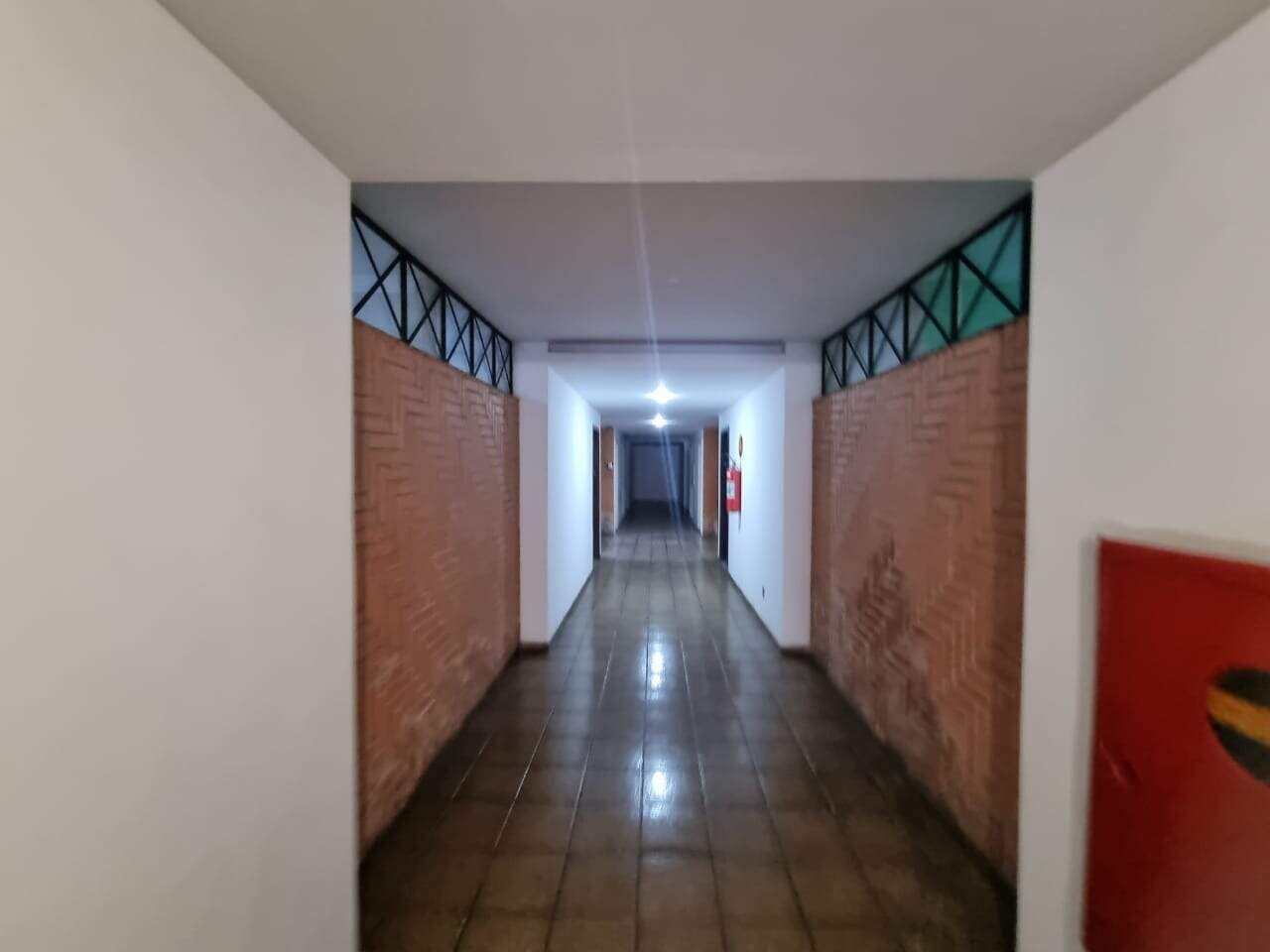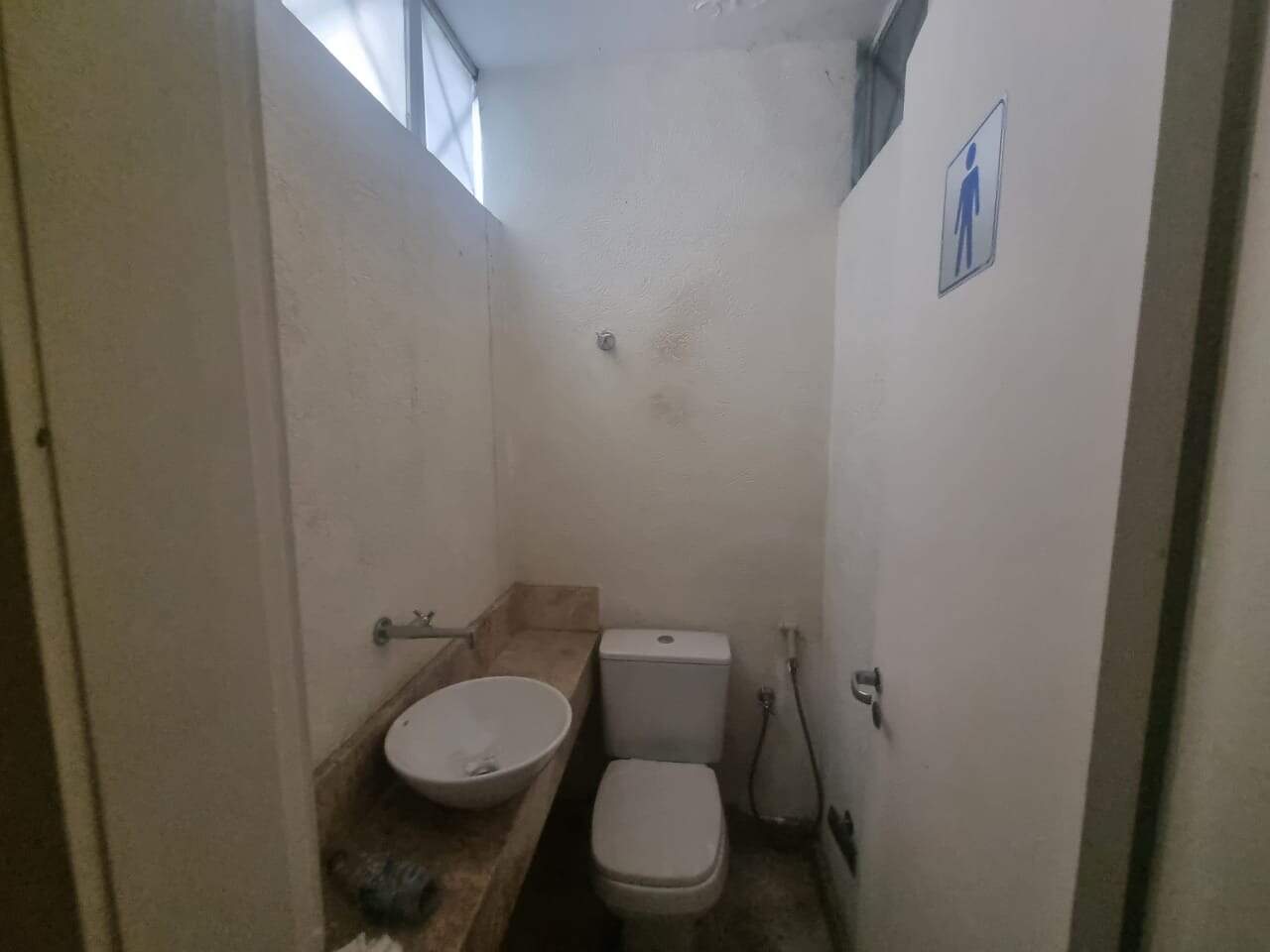 Condomínio com portaria, sala de espera com banheiros masculino e feminino.