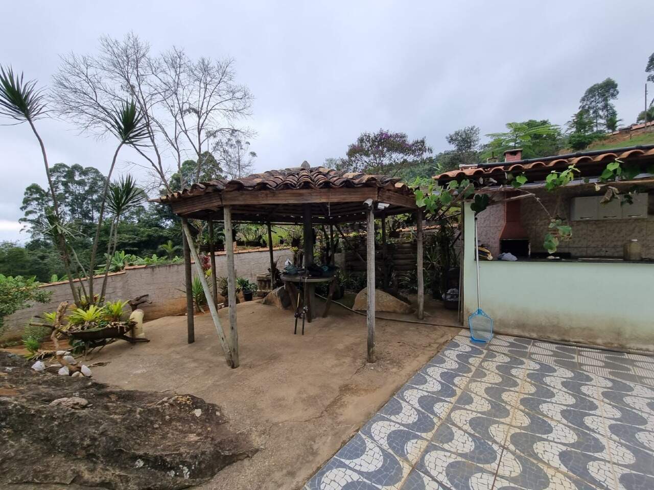 Uma casa dom 5 quartos, 2 banheiros, 2 cozinhas com fogão a lenha e serpentina, sala grande, área de serviço, churrasqueira, piscina aquecida , orquidário, galinheiro.