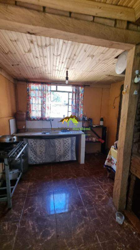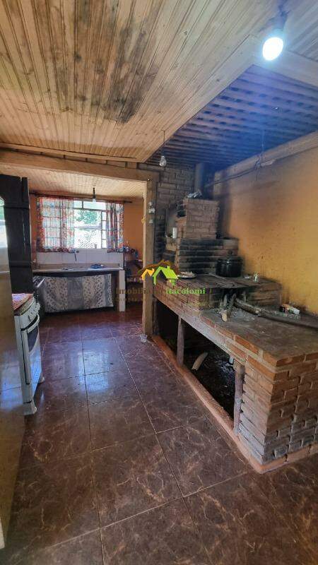 Casa com 4 quartos, sala, cozinha com fogão a lenha e serpentina, 1 banheiro.